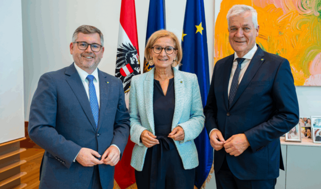 Foto: v.l.n.r.: Walter Wieseneder, Otto Jäger, Friedrich Buchberger, Norbert Haselsteiner, Gert Kratzer, Johanna Mikl-Leitner, Ulrike Schachner, Othmar Karas, Franz Schnabl, Alois Schroll, Gerhard Leeb, Martin Ritzmaier, Peter Blessky.